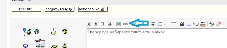 | Сверху где набираете текст есть значок .