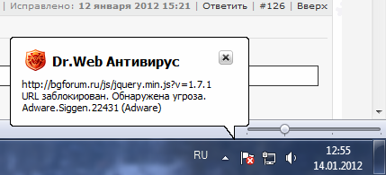 Dr.Web ошибочно детектирует стандартную библиотеку форума как вирус. Скорее всего, в следующем обновлении баз исправят ошибку.