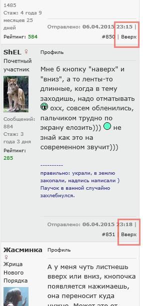 | Мне б кнопку "наверх" и "вниз", а то ленты-то длинные, когда в тему заходишь, надо отматывать