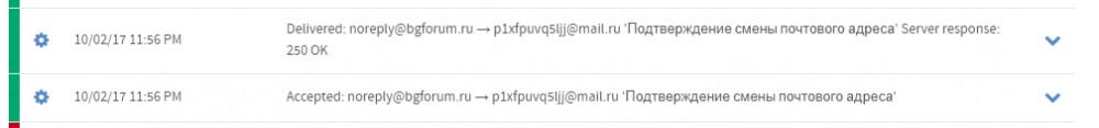 stas777, в логах пишут, что сообщение о смене адреса доставлено на ваш ящик. Ниже прикреплен скриншот. Вам нужно активировать новый почтовый ящик по ссылке в письме.