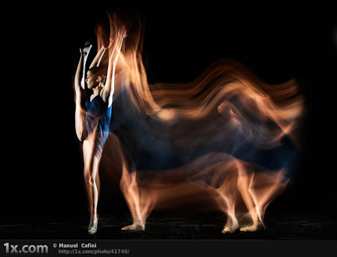 Марнатка, фотографии с балериной тоже не являются сложными. На той, где она будто в огне - светит постоянный свет и откладывает на матрице фотоаппарата следы размазанных движений, длинная выдержка (тут секунды 2), а в конце делается заключительная вспышка с синхронизацией задней шторки.