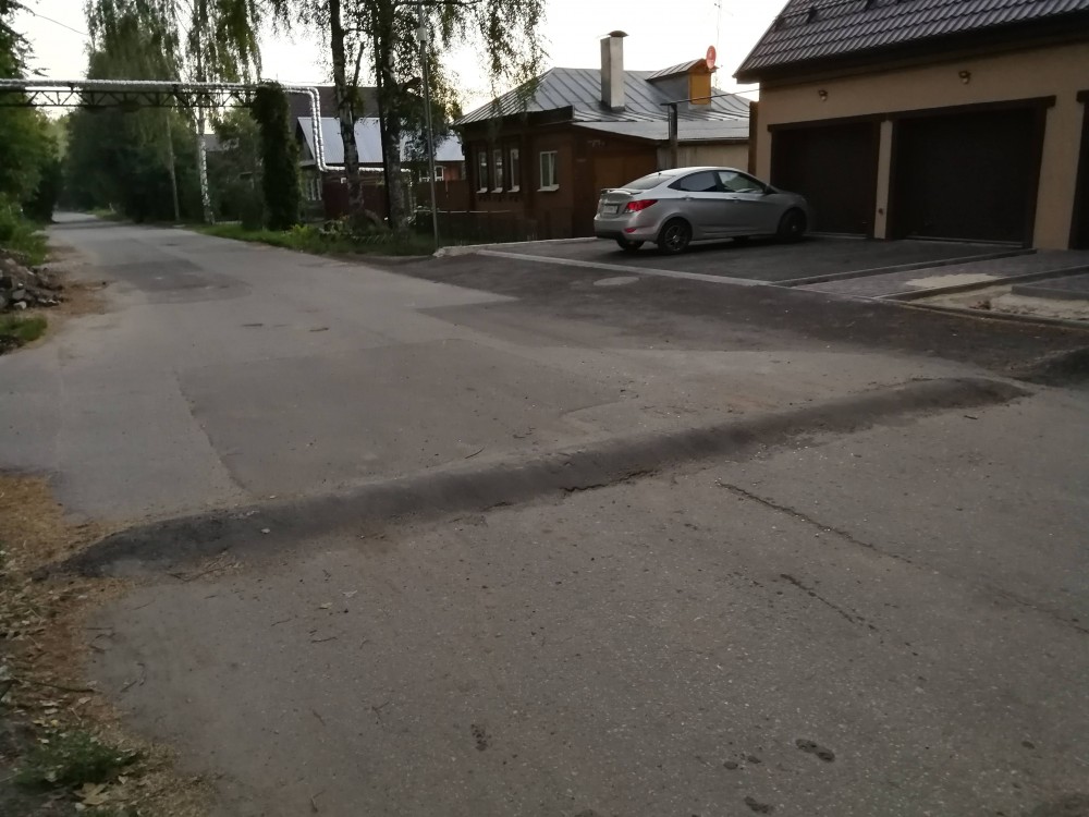 | Эту кочку самовольно соорудили местные жители, чей автохлам стоит впереди на свежеасфальтированном подъезде к гаражу.