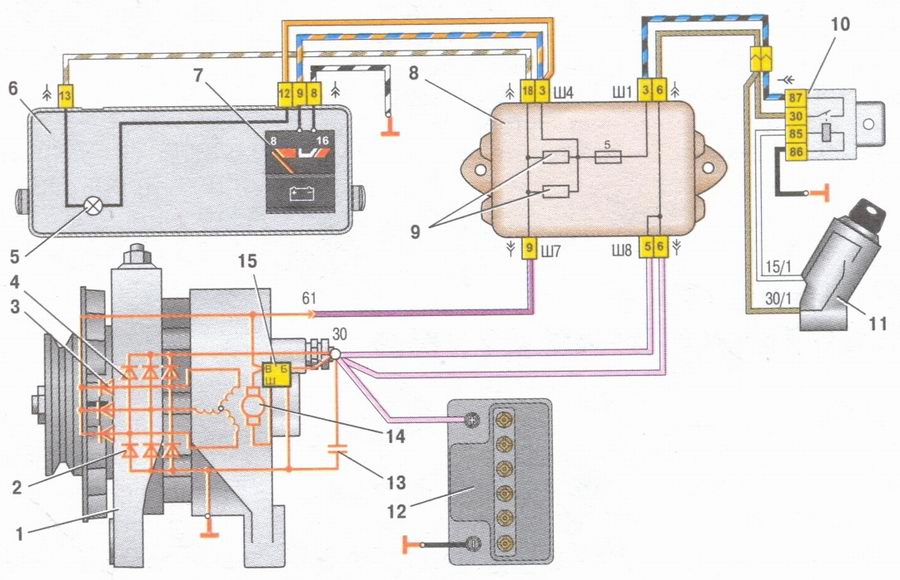 | Скорей всего, "шоколадка" накрылась или с диодами проблемы. Когда-то у меня был "Моссер", пару раз помогала замена этого узла, когда зарядка терялась. К генератору она крепится где одним, а где двумя болтами, вроде бы, М5. Пошарься по форумам тазов, там наверняка есть ответ. А лучше сразу шоколадку поменяй. Наверняка у соседей в гаражах валяется под верстаком от отживших генераторов.