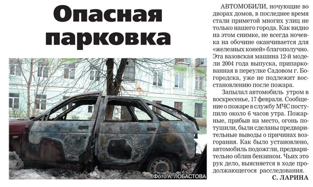Yelle написал: Не так давно видел сгоревшую двенашку на Садовом переулке Ну вот тут в Богородской газете писали ----------