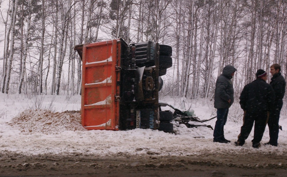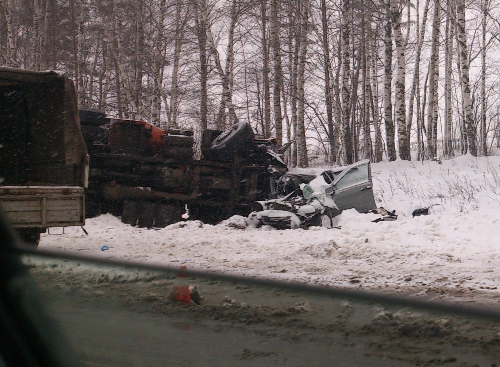 муж сейчас приехал,говорит страшная авария. камаз упал набок прям на легковушку..два трупа. печально.