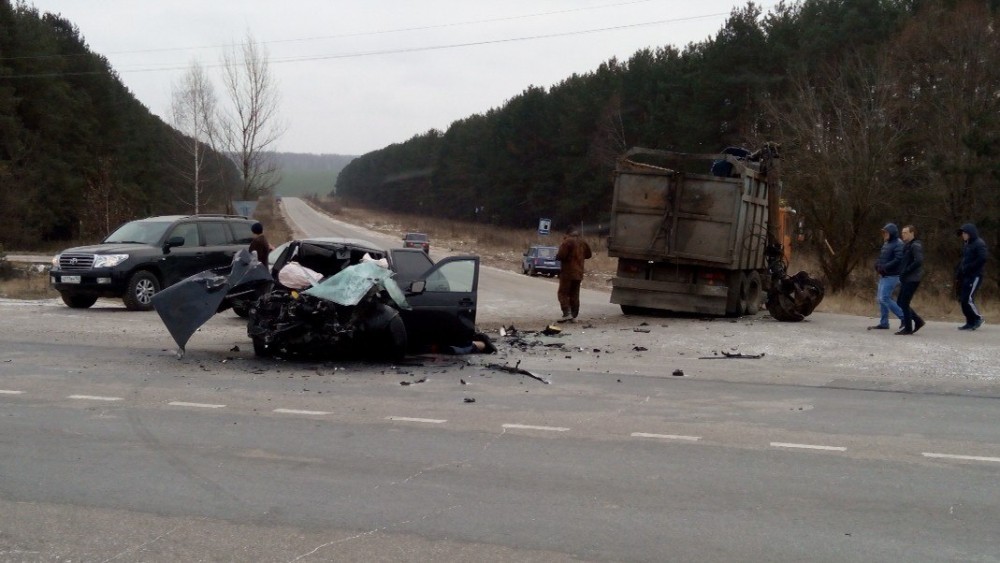 Приора,ехавшая с Павловской стороны,врезалась в камаз,поворачивающий в сторону Лакши