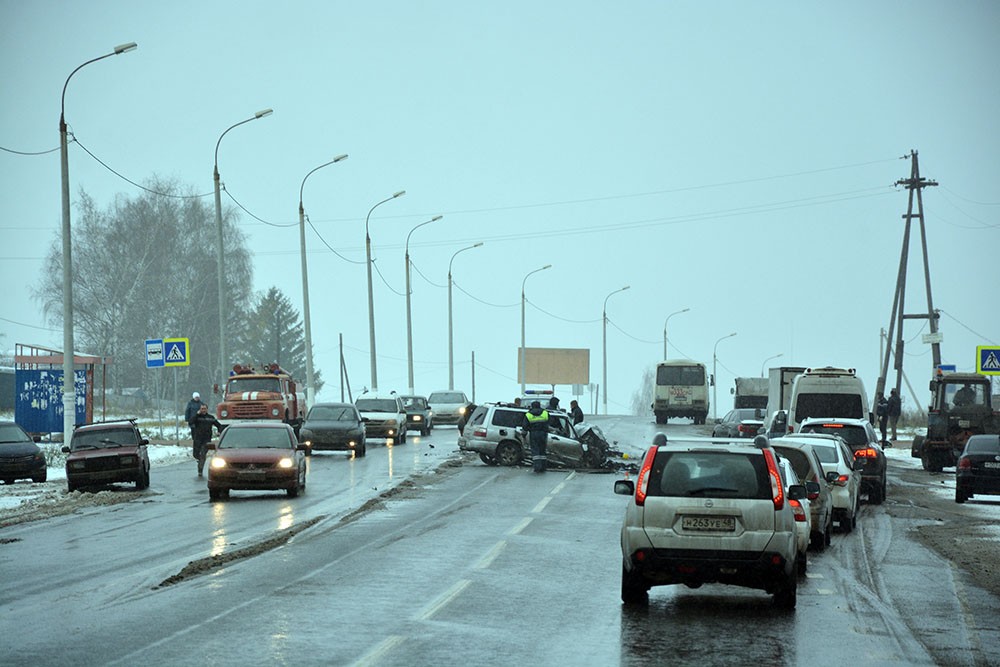 | Сегодня утром примерно в 7:25 в левой полосе перед виадуком в Доскино двое догнались, и аварийный знак еще не успели выставить.