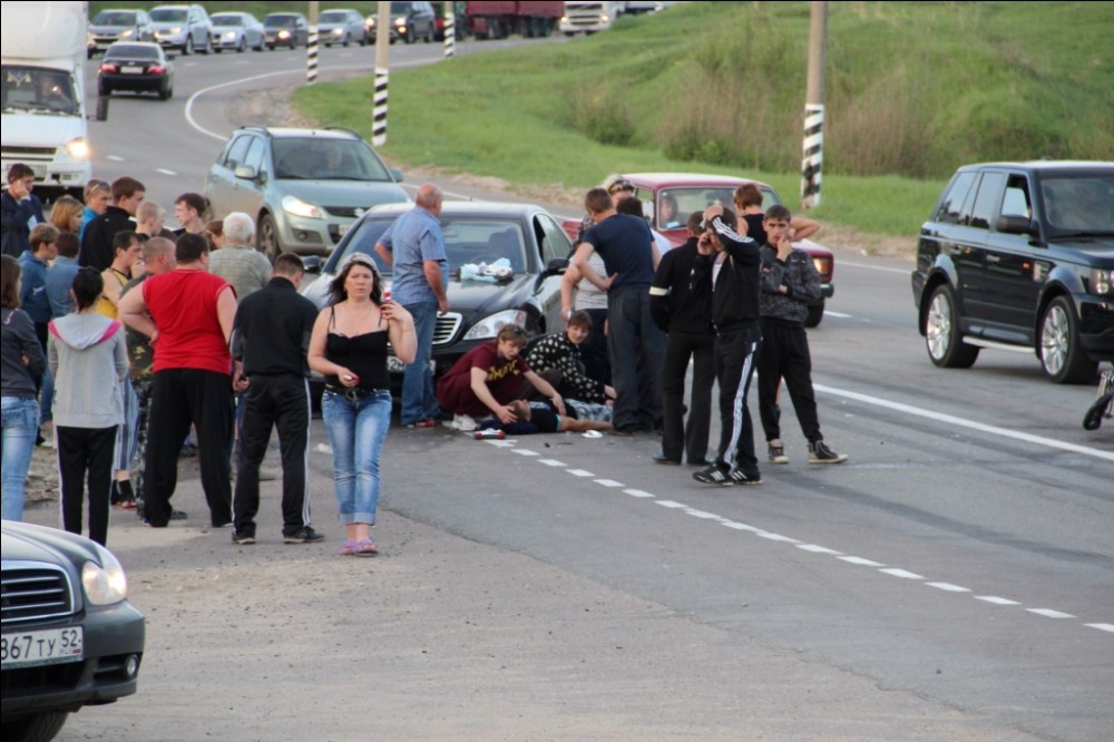 За нами Мерседес ехал и спускался прям в след, и в него вдруг въезжает мотоциклист, поворачивал наверное.. Попозже фотки скину, если интересно что там было.. Парень на мото ногу сломал и еще что то там, в крови много было, пассажир прихрамывал А у мерса вроде помято немного только спереди и все... |