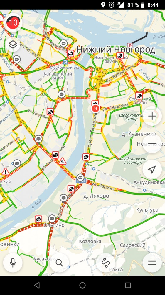 Нижний встал, 10 баллов пробки. Хотя Гагарина от Мызы почти свободна как никогда