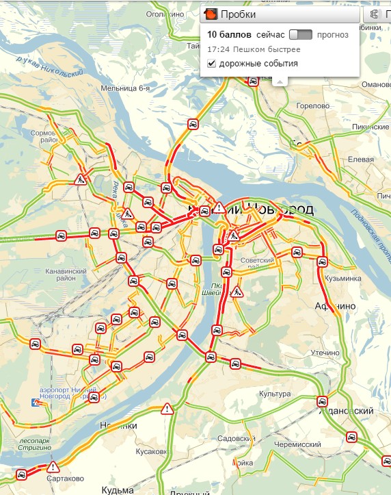 На Бурцевском повороте авария (два неудачника догнали друг друга), в Окскую гору большегрузы, да и легковые еле заезжают, на Сартаковской горе вообще издец, далее в Новинках тоже жопа!Вообщем люди, воздержитесь от поездки в НиНо