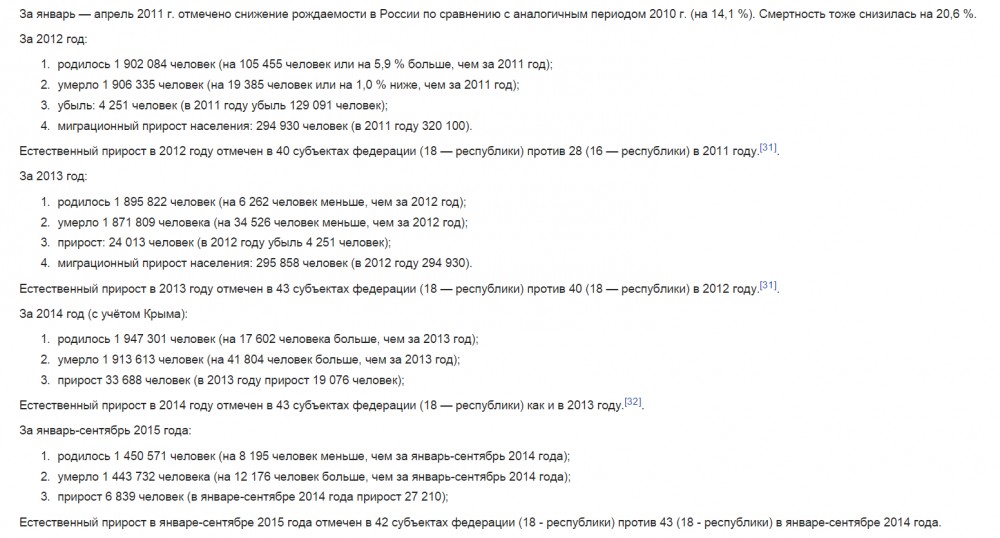 | Масяня написал: минус один миллион человек в год (Россия)по данным агенства ОднаБабкаСказала? Более известные науке источники утверждают несколько иное. |