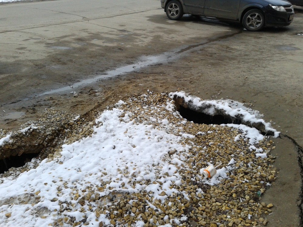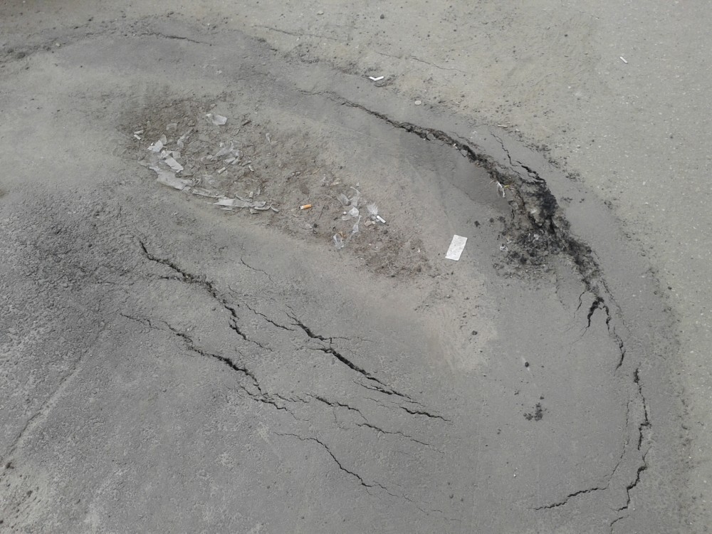 Переулок Чернышевского дом 3, яма была там заделана около месяца назад. И вот результат ремонта. Неужели им непонятно там внутри пустота. Будьте осторожны !!!