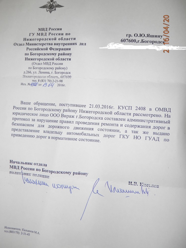 | Богородские дорожные сплетни, посмотрим, что вам напишут, но 90%, выше стоящая ,а тем более ниже стоящии, инстанция будет соблюдать юридическую этику и ответ будет не в ваш + , но будем боротся совместно.