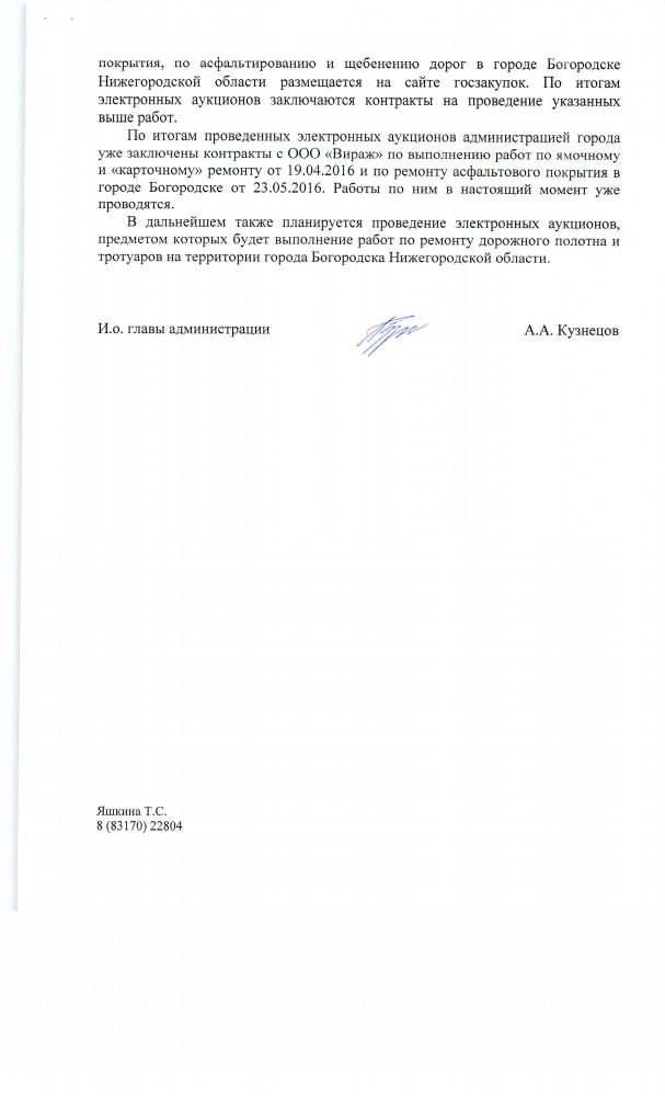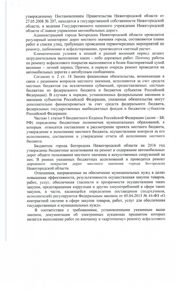 Добрый вечер всем ! Ответ администрации города Богородска по дорогам и тротуарам !!!