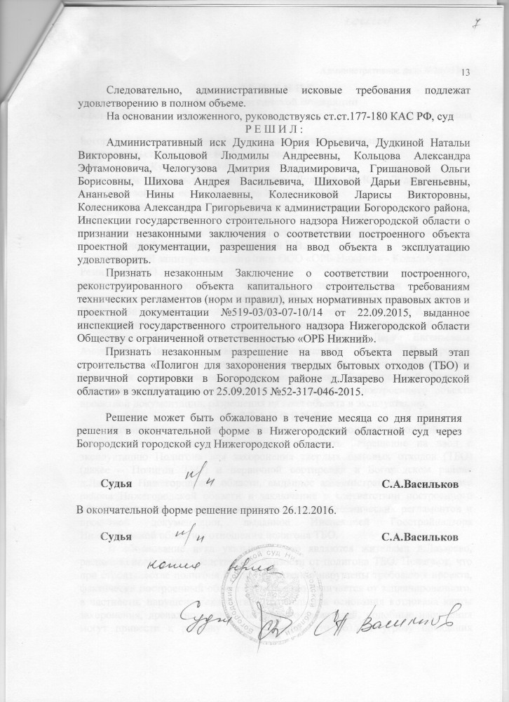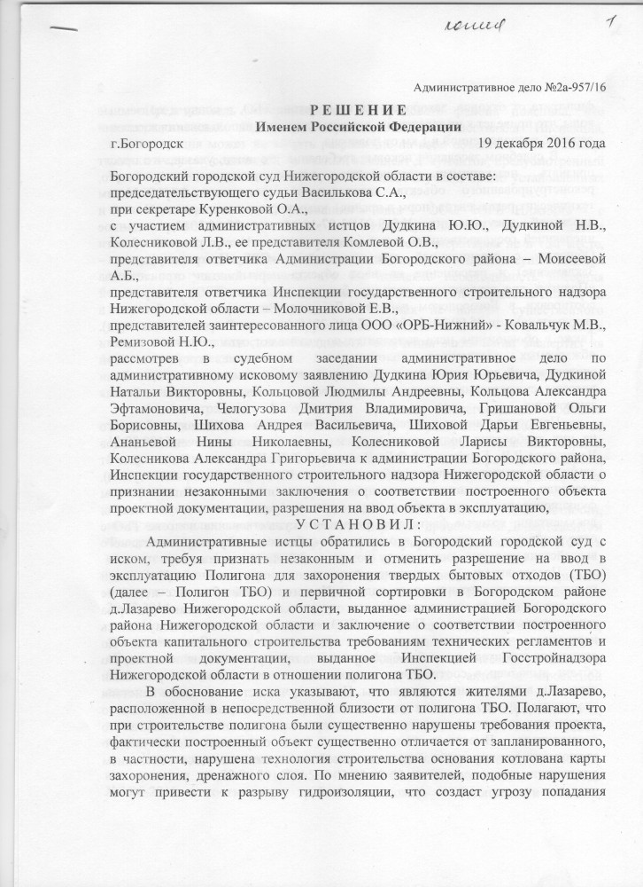 Решение суда, лист 1