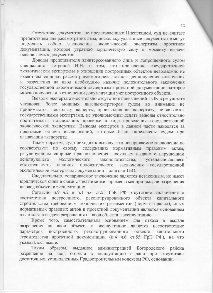 Dim_Sergeich написал: Чего там на 14 листах? Изложите в 2-х словах Разрешение на ввод объекта в эксплуатацию выдано незаконно. ----------