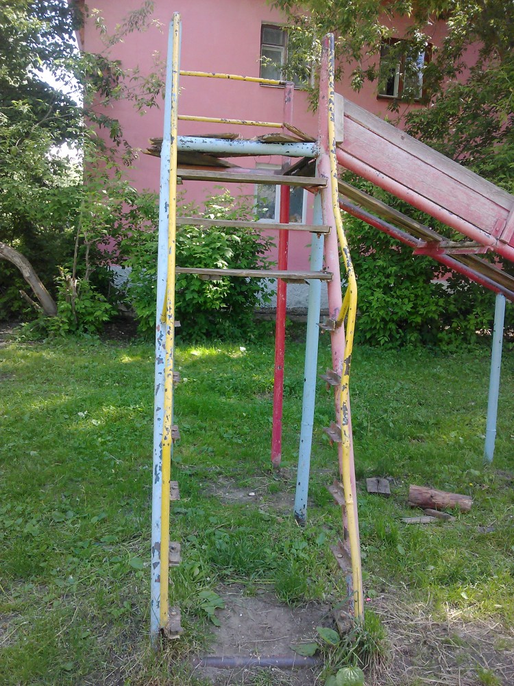 | Вот так выглядит детская площадка на улице Комсомольской, дома 20,22.Горка, которую сложно назвать горкой. Песочница, в которой уже давно нет песка...Здесь постоянно гуляет множество детворы, но никому из нашего ЖЕКа нет дела до них. Пускай им наконец стыдно станет!Детям еще все лето отдыхать в таких условиях!