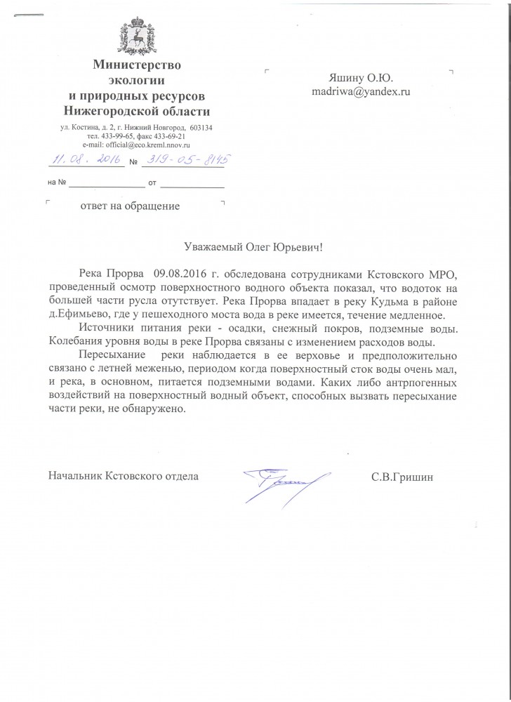 Ответ главы администрации города Богородска.