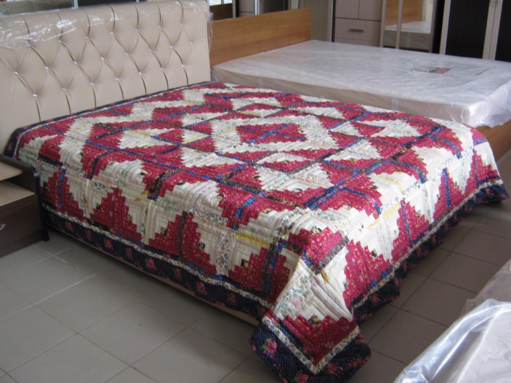 Покрывало кроватное, размеры 240х240 см, выполнялось для фестиваля в Сосновском, где и признано лучшей работой. Особенность данного изделия состоит в том, что здесь (просто не верится) 160 метров( именно СТО ШЕСТЬДЕСЯТ МЕТРОВ) РУЧНОЙ СТЁЖКИ, поскольку сломалась машинка в процессе работы над изделием, а время поджимало. Автор: Акулова Зоя Николаевна. |