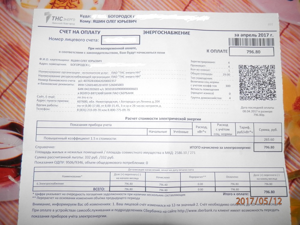 Я, Яшин Олег Юрьевич, собственник квартиры ...........................................город Богородск. Прошу Вас провести прокурорскую проверку расчёта стоимости электрической энергии, а именно откуда появилась сумма 265,60 руб. и сумма Итого 796,80 руб. Повышенный коэффициент у меня 1,5 к стоимости 265,60 руб. Считаю, что сумма Итого должна быть с повышающим коэффициентом, согласно предоставленной информации в квитанции- 398,4 руб. Считаю это мошенничеством. Квитанция за апрель энергоснабжение в приложенном файле. ----------