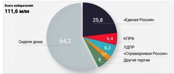 | Даже при самом предвзятом и натянутом подсчёте,с учётом всех вбросов и приписок победила несуществующая партия "Сидели дома"