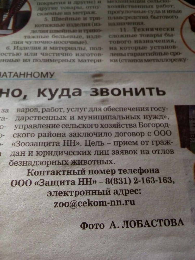 | Пока вы тут страсти постите вот вам номер куда обращаться. Глазам своим не верю. Пока было ни до того, чтобы позвонить в Зоозащиту и убедится так ли это, но в газете пишут, значит так.