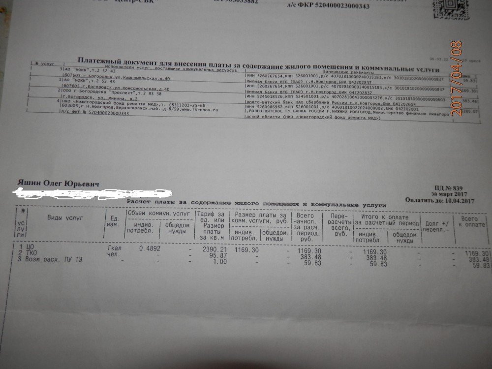 Я, Яшин Олег Юрьевич сообщаю Вам, что в квитанции на оплату жилищно-коммунальных услуг за март 2017 в графе ТКО стоит сумма 95,87 руб. на человека в месяц, а в квитанциях за предыдущие месяцы: сбор, транспортирование и утилизация ТКО, также сумма 95,87 руб. на человека в месяц. Теперь в квитанциях за утилизацию мы не платим, а сумма не меняется. Это факт коррупции ( см. приложенные файлы ). Прошу Вас провести прокурорскую проверку согласно законодательства РФ. Ответ прошу дать за подписью прокурора города Богородска.