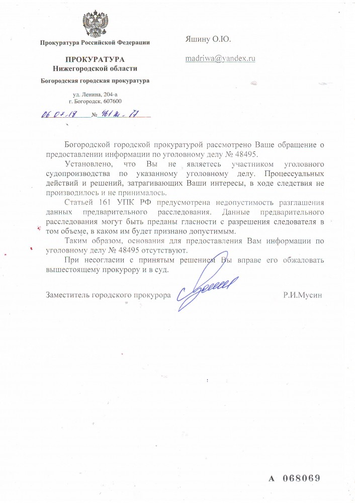 Доброе утро всем. Посмотрим, что ответит прокуратура города Богородска на это.