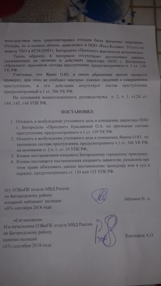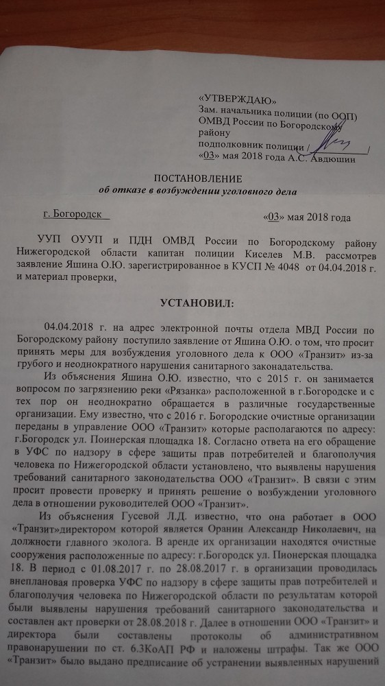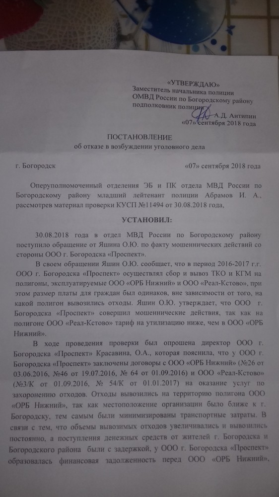 Жители города Богородска и района, я Яшин Олег Юрьевич город Богородск Нижегородская область решил создать эту тему так как мне постоянно полиция города Богородска Нижегородской области отказывает в возбуждения уголовных дел. А прокуратура города Богородска поддерживает их. Только благодаря пока прокуратуры Нижегородской области данные постановления отменяются и направляются обратно в полицию города Богородска. И так постоянно, это "карусель" или волокита. Предлагаю в этой теме выкладывать постановления полиции города Богородска и района в отказе в возбуждения уголовных дел.
