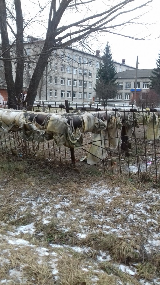Состояние изоляции труб для центрального отопления на территории школы 6. Дальше трубы проходят на Комсомольскую. Вот они потери тепла в квартирах !!! Вот почему так на улице тепло ))) и цены за отопления больше 1000 руб. в месяц !!!