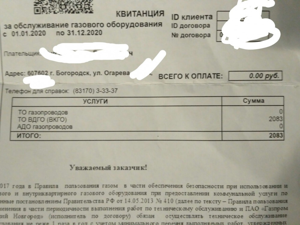 Arsik написал: bogest написал:Цитата:У меня заключён договор и оплата за обслуживание по факту, но никто не приходил. По графику стоял август.Денег да, прилично. Три оборудования в квартире и за каждое плати. Раньше в квитанции ЖКХ было обслуживание и платили каждый месяц, теперь сказали вот так, платим раз в год.По факту? Так можно было?К нам пока не приходили, интересно увидим мы это обслуживание за 2 рубля или нет. Так выглядит квитанция когда оплата "по факту". Кстати, а мне на той неделе позвонили и предложили обслуживание провести в неудобное для меня время и я отказался. У нас по договору август месяц, а у них видите ли перенесли сроки. ----------