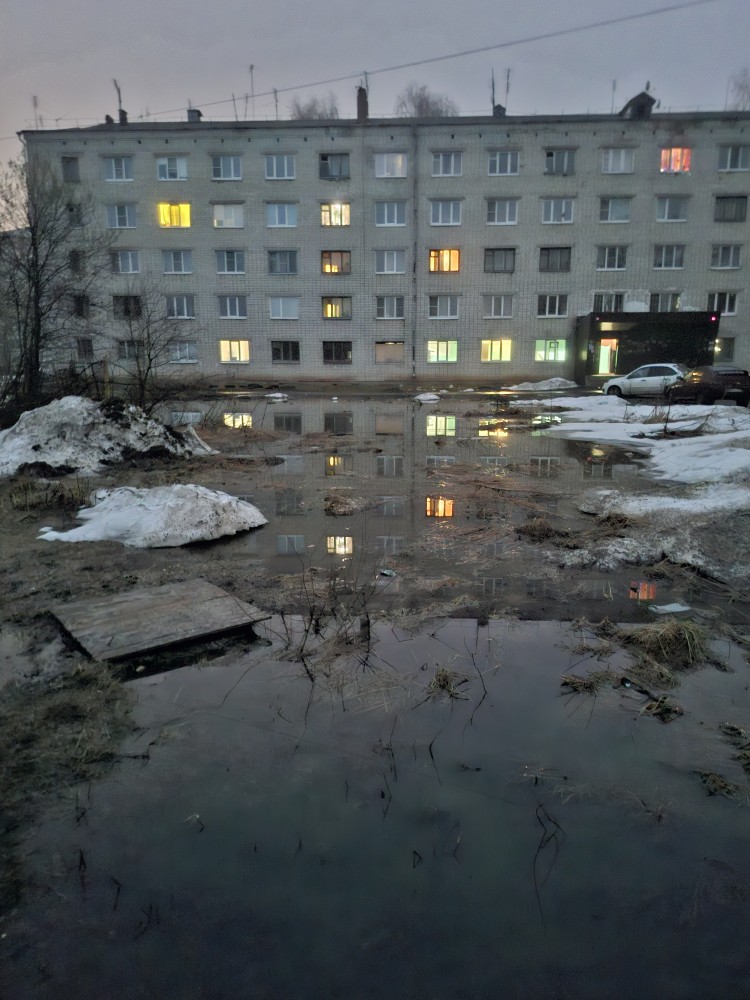 | Вы не в то время гуляли.Вода стекла в подвалы и далее. Гулять нужно было 30 марта с 18-00.