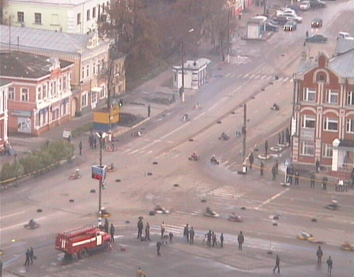| Зато в городе комендантский час был. Шли с Аутом мимо - от души поржали. Судя по всему, солдатиков вывезли посмотреть на картЕнг, остальных зрителей не видно. И вообще не понимаю - это зачем нужно голактеке? Ездят по кругу на одинаковых побрякушках, разгоняясь до 50 км/ч. Ни зрелища, ни смысла, ни ума, ни фантастики. Какой-то странный спорт...