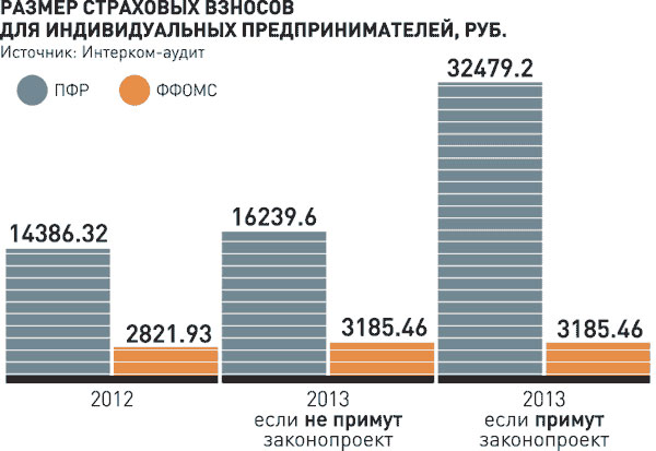 | Вчера госдума приняла во 2 и 3 чтениях законопроект, по которому ип в 2013 году оплатят 38850,12 р. страховых взносов. И опять слукавили, пишут, что пока только на 2013 год планируется увеличение,видимо, чтобы народ сразу не пугать