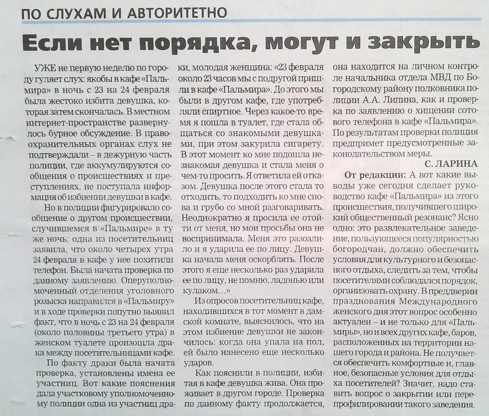 В местных печатных изданиях (теперь только так) появилась статья про это происшествие.