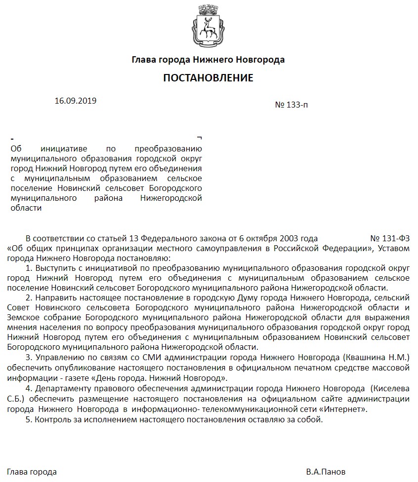 Собственно, вот тут мэр Нижнего Новгорода с инициативой выступил вчера о присоединении Новинок.