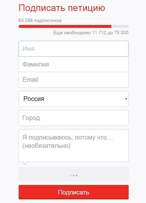 сайт какой-то подозрительный, доменное имя в не русской зоне, навряд ли кому нужна эта петиция, ИМХО просто под эту дудку идёт набор базы email для последующих спам-рассылок