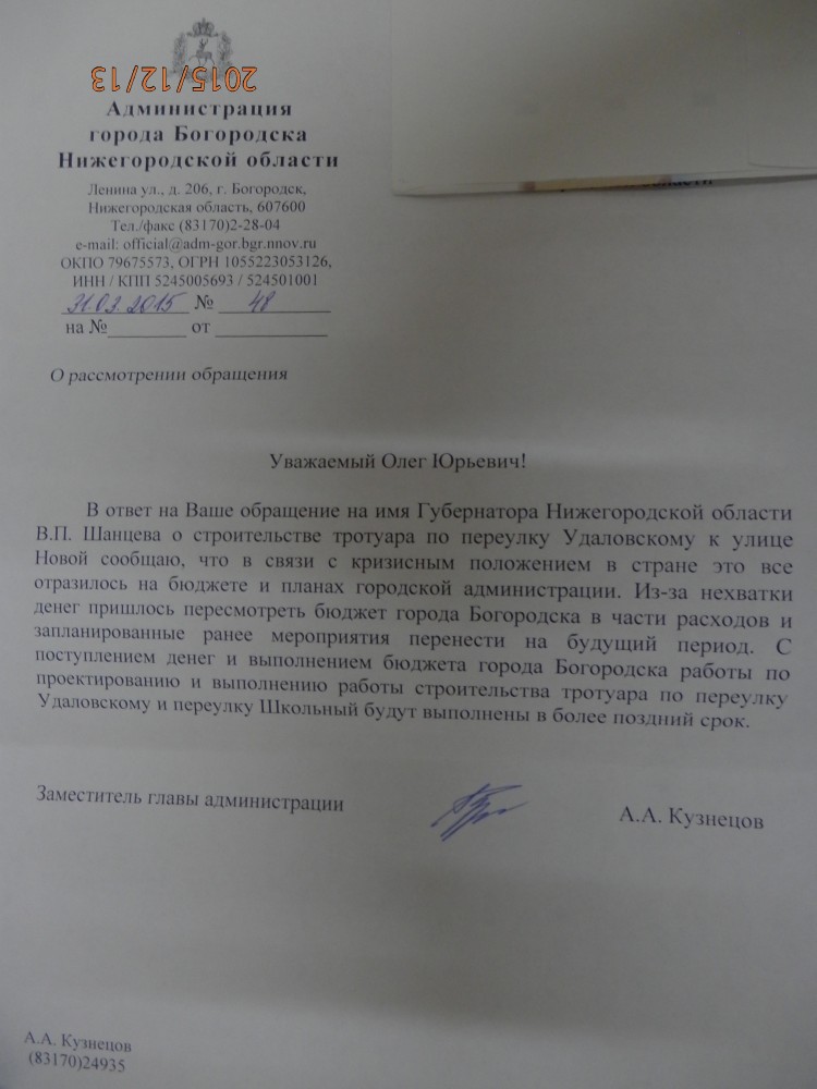 Вот так отвечает администрация города Богородска!