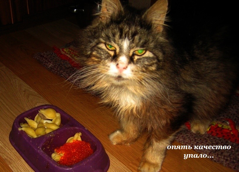 Насчёт погреба так говорят тем, кто видит за 1000 км. лучше, чем находящийся в том месте непосредственно. А вы даже вкус умеете воспринимать на таких расстояниях. Ну как вас было не отметить? Вы же уникум. (Наверное обучались этому в специальных учебных заведениях, да? У меня есть один знакомый, с военно-учётной специальностью "спецпропаганда", он тоже любой разговор умеет повернуть так, что мозги узлом завяжутся, но дистанционно анализировать качество жратвы даже он не умеет.) А качество упало, повторю ещё раз. Ещё месяц назад готовили изумительную селёдку под шубой, не всякая мамзель так дома готовить умеет, а сейчас стало невкусно. Может, пройдёт. ----------