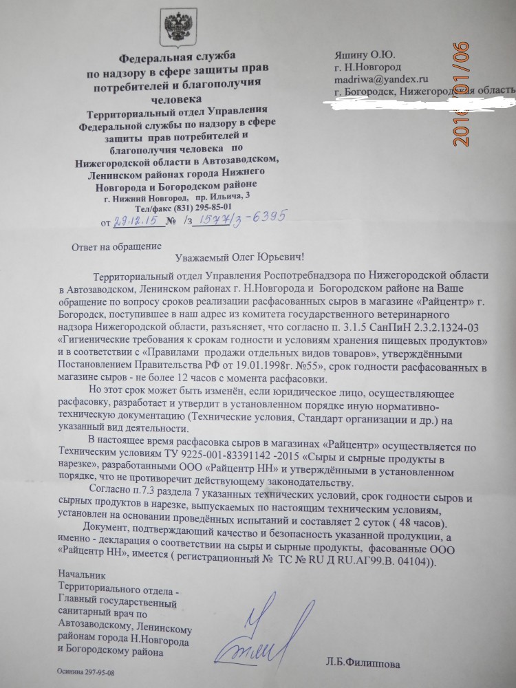 Добрый вечер всем ! Ответ Роспотребнадзора по срокам годности расфасованных сыров !