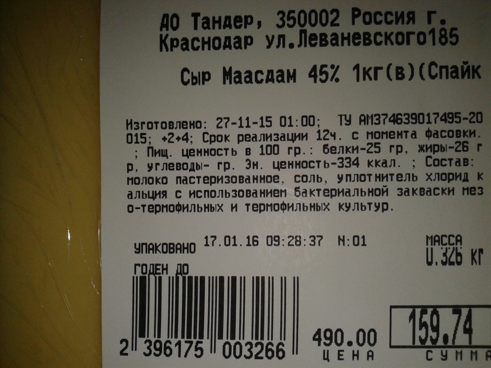 | Богородские дорожные сплетни написал: В Магните в 2-м микрорайоне дом 6, на маркировке расфасованных сыров появилась дата изготовления сыра, срока годности или годен до какого числа, нет ! Если Вы внимательно посмотрите, то увидите, что там есть надпись про срок реализации 12 часов. |