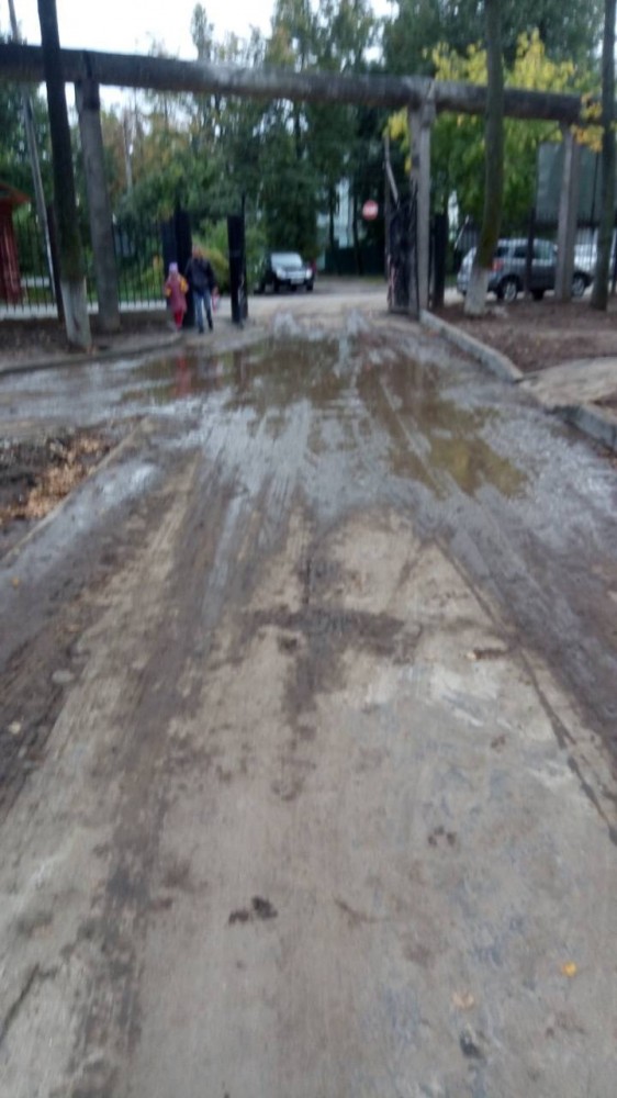 | Вот такая «комфортная среда» у нас около ЦВР в старом парке... Лужа грязи прямо по центру главного входа, плюс грузовики эту грязь дальше растаскивают во все стороны... Это дожди только начались, дальше хуже будет... Ведь обещали к 1 сентября закончить, а нет, в конце августа начали только все работы, в сухую погоду не успели... Нельзя заезд КамАЗов и проход детей в ЦВР разделить как-то? Неужели все должны по этой грязи ходить и от грузовиков отскакивать? Или пока несчастный случай не случится ничего придумать не можем???