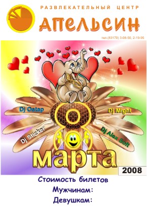 Led написал: Вот. как вам? ужасть! верстальщику незачот, стыдно, батенька должно быть... посмотрите хоть на флаеры и афиши клубов в НН... Sticker написал: 8 марта Что ж он себя как... Хоть бы Alex Hard, а то как-то не солидно с мягким то ----------