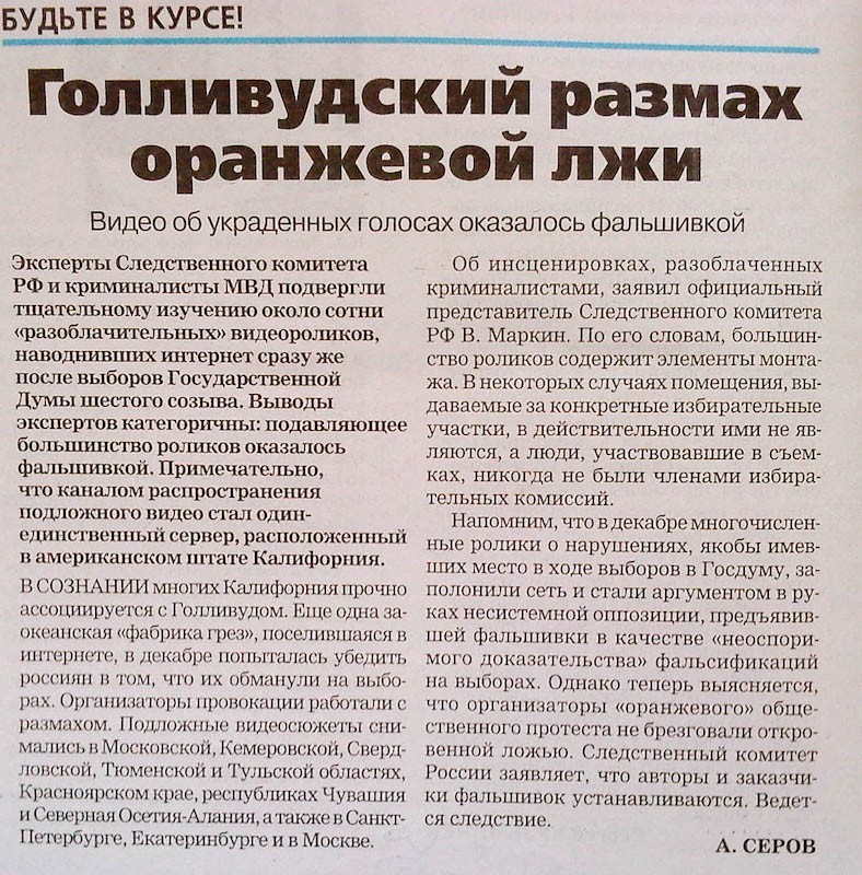 Посмотрите какая прекрасная статья была опубликована на днях в Богородской газете про ролики с нарушениями на выборах. Они называют YouTube сервером из штата Калифорния, а нарезку видео — элементами монтажа. И поэтому ролики — фальшивка. Зачем этот бред на страницах газеты?