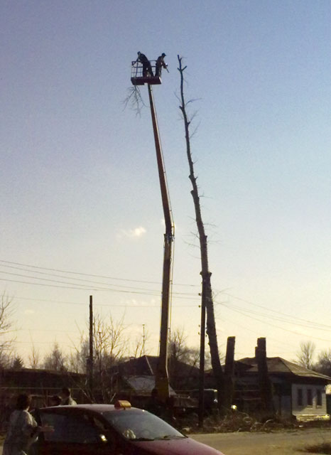 До этого на Октябрьской тополя рубали.Интересно, чья это инициатива? Так изуродовать ёлочки... Вот предложение поступило...почему так плохо освещен в тёмное время суток портрет В.В.Путина... не порядок. ----------