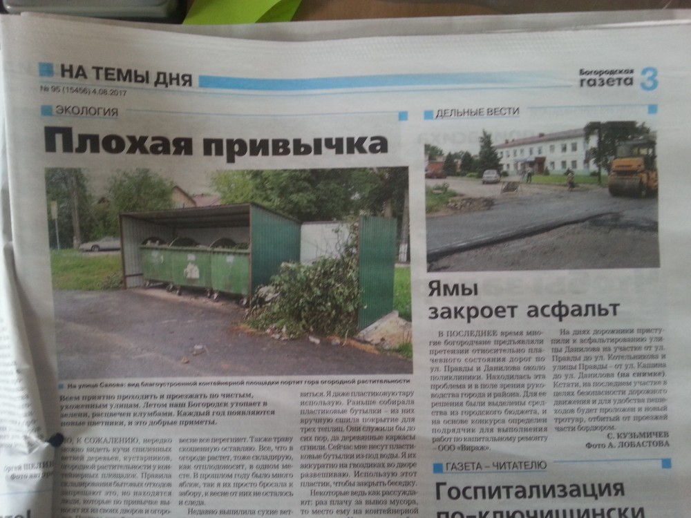 Gram написал: passagir, спасибо за информирование. Почаще бы об этом рассказывали на форуме, может быть число нытиков, что всё плохо, стало меньше. Много всего хорошего в городе происходит, а об этом ни слова. Давайте менять информационную ситуацию. В Богородской газете информация вышла на следующий день ))))) даже с фоточкой)))). А информационное поле... ----------