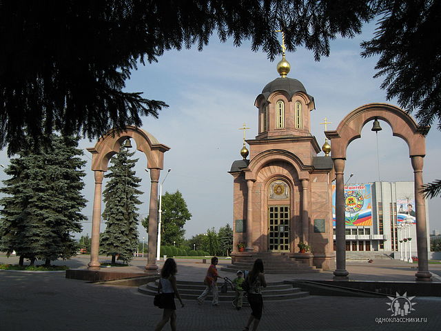 | Вот такую часовенку поставили в моем родном городе, а перед ней фонтан.