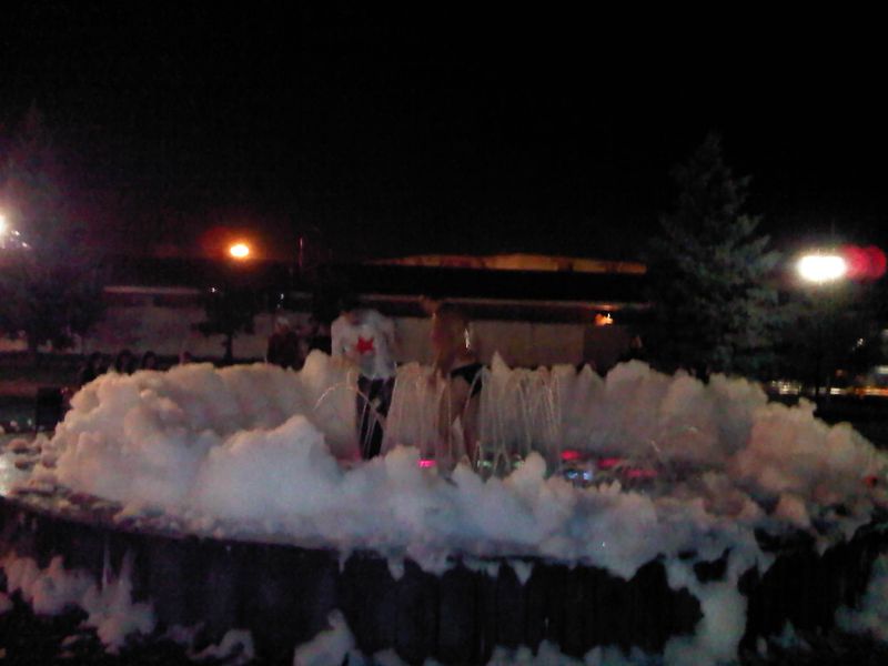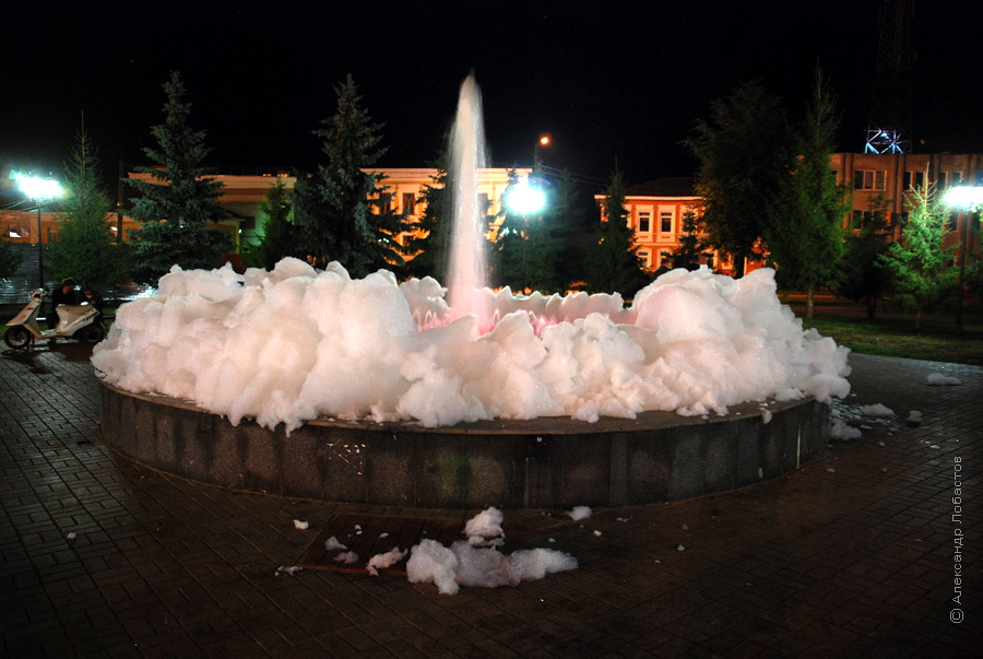 Опять уроды в фонтан ПАВ налили. Все в пене. Теперь два дня ремонтировать будут.