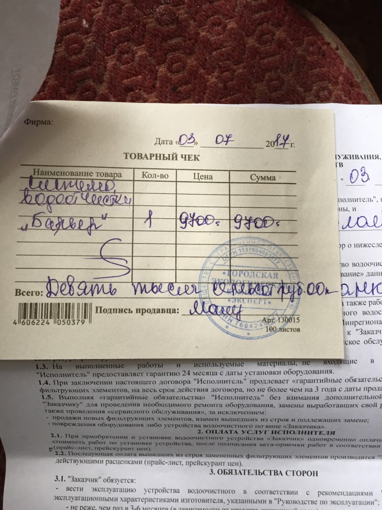 | У меня матери такой же фильтр впаривали две наглые бабцы в прошлый четверг. Причем начали разговор с вопроса: есть ли у вас льготы?Типа вам скидка положена, как пенсионерке. Говорили, что процедура установки обязательна для всех, что будет общее собрание на улице и т.д. и т.п. Но мать оказалась не лыком шита)))))) сказала, что сейчас в Водоканал и в полицию позвонит)))))) эти две профурсетки смылись со скоростью ветра