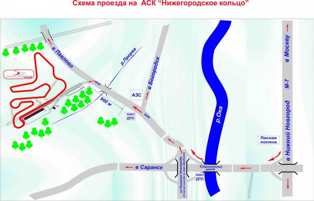 Строительство трассы было начато в конце 2008 года, открытие состоялось в июле 2010 года. Трасса длиной 3222 метра имеет семь разных конфигураций, в том числе полосу для дрег-рейсинга (805 м.), овал (617 м.), а также может делиться на тренировочную зону (1836 м.) и зону для картинга (1379 м.). Трехслойный асфальт уложен в соответствии с международными требованиями к трекам подобного уровня. Трасса построена в соответствии со стандартами Международной автомобильной федерации (FIA), которая позволит проводить все виды соревнований, в том числе международные, кроме Formula1. Спортсмены отзываются о треке как об интересной трассе, требующей от пилотов высокого мастерства. Кроме собственно спортивного трека и всего необходимого для гонок оборудования, построены открытые трибуны, позволяющие зрителям видеть все интересные участки трассы, а также стоянка. Контакты 603032, Нижний Новгород, ул. Памирская, д. 11-Л E-mail: info@nring.ru Телефон: +7 (831) 4153588 http://www.nring.ru/ Как доехать Трасса АСК "Нижегородское кольцо" расположена в 22 км от Нижнего Новгорода, 400 км от Москвы, в Богородском районе Нижегородской области. Проезд от Москвы: выезд в сторону Нижнего Новгорода, не доезжая Нижнего Новгорода нужно повернуть с М7 на Саранск (направо), проехать по мосту через Оку и сразу за постом ГИБДД уйти с основной трассы правее (на Богородск, Павлово). Далее ехать до поста ГИБДД на развилке "Богородск – объездная Богородска" (у поста ГИБДД). По левой дороге (объездная Богородска) 700 м. Трасса находится слева от дороги. Проезд от Нижнего Новгорода: выезд из мкр. Щербинки в сторону Павлово и Богородска, до развилки "Богородск – объездная Богородска" (у поста ГИБДД). По левой дороге (объездная Богородска) 700 м. Трасса находится слева от дороги. |